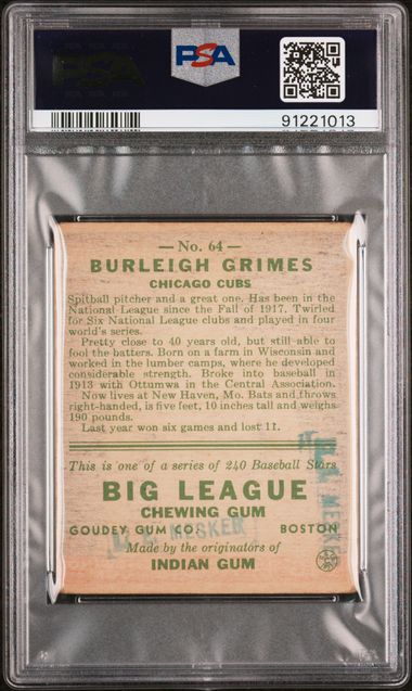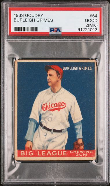 1933 Goudey Burleigh Grimes PSA 2 (MK). There is a stamp mark on the back.