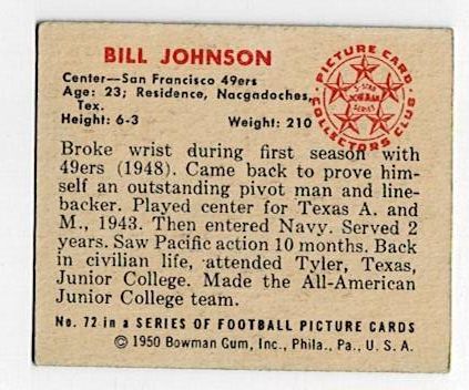 1950 Bowman Football Bill Johnson #72
