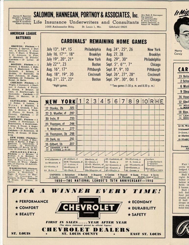 / 1950 St. Louis Cardinals v. New York Giants Program