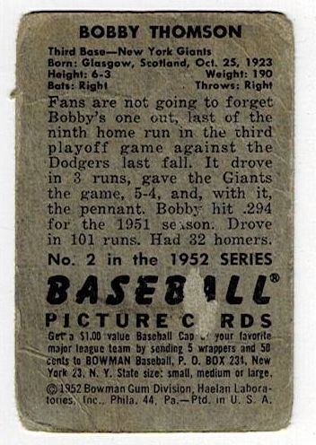 1952 Bowman Bobby Thomson #2
