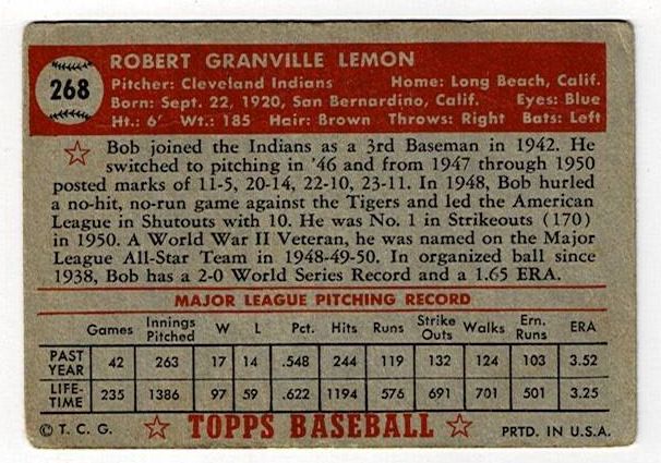 / 1952 Topps #268 Bob Lemon
