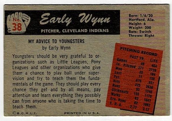 1955 Bowman Baseball Early Wynn #38. This card is in very good condition with corner wear and no creases.