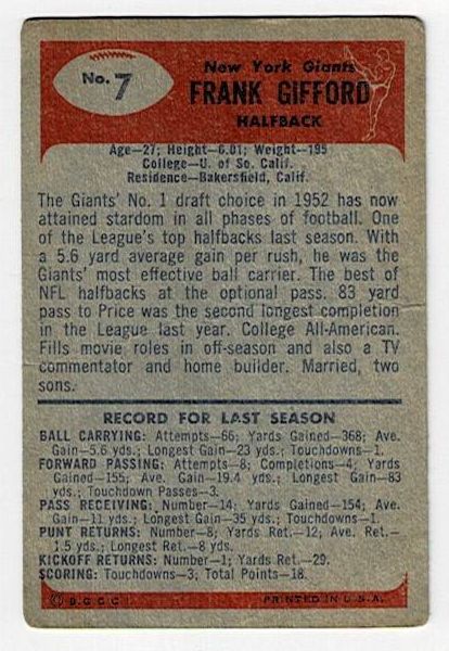 1955 Bowman Frank Gifford #7