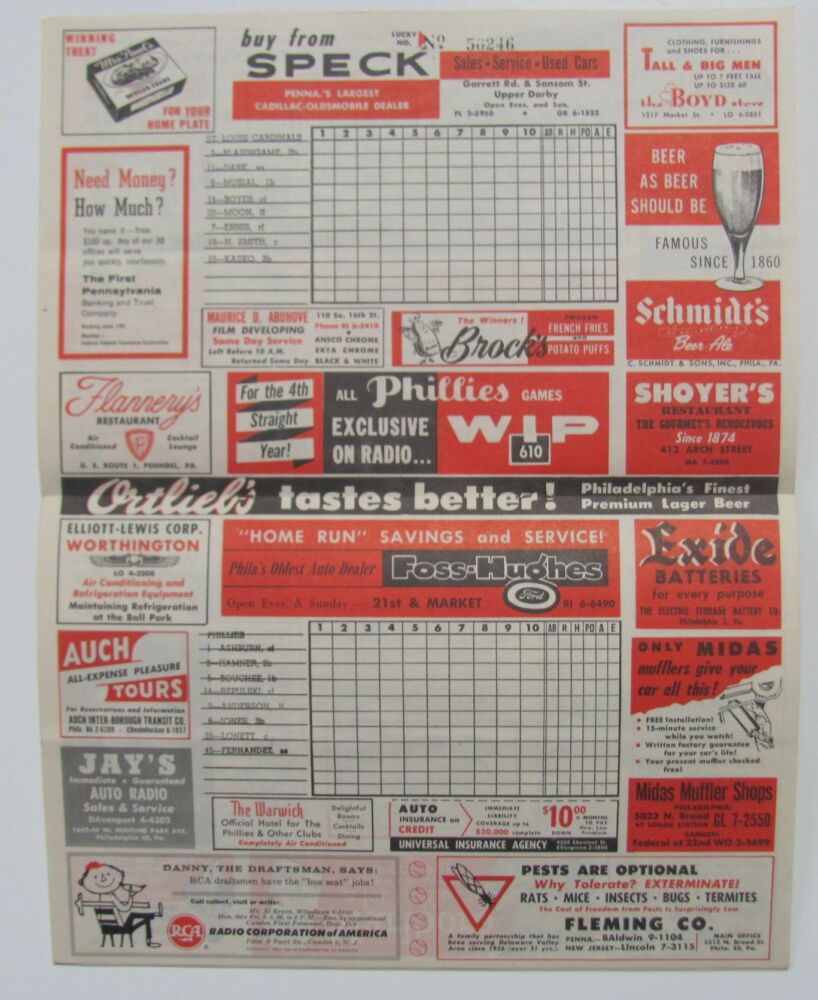 1957 Philadelphia Phillies v. St.Louis Cardinals Program