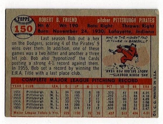 1957 Topps Bob Friend Signed Card