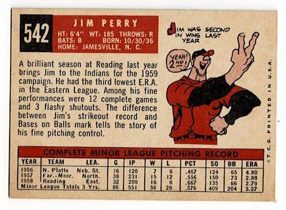 / 1959 Topps Jim Perry Signed Card