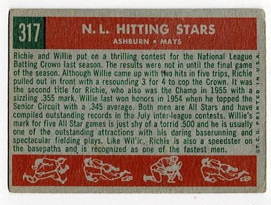 1959 Topps NL Hitting Kings Willie Mays, Richie Ashburn #317