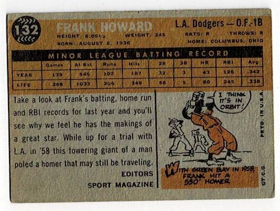 1960 Topps Frank Howard Rookie #132