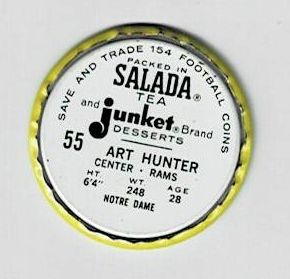 1962 Salada Football Coin Art Hunter SP #55 Los Angeles Rams