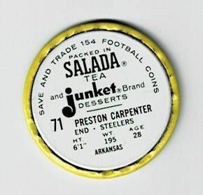 1962 Salada Football Coin Preston Carpenter SP #71 Pittsburgh Steelers