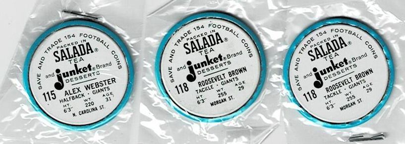 These coins are in ex-mt to near mint condition. Included are Roosevelt Brown (2) and Alex Webster.
