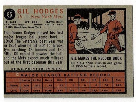 1962 Topps Gil Hodges #85
