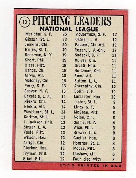1969 Topps 1968 Pitching Leaders #8 Vg-Ex