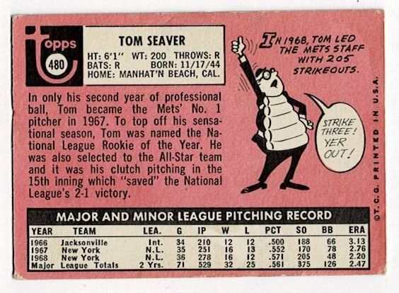 1969 Topps Tom Seaver #480. The card is in very good condition with corner wear.