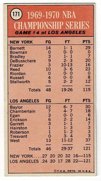 1970-71 Topps Basketball Championship Game 4 Jerry West #171. The card is in very good-excellent condition with corner wear.