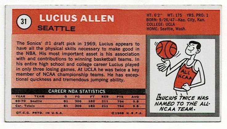 1970-71 Topps Basketball Lucius Allen #31. The card is in very good-excellent condition with corner wear.