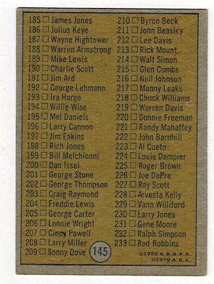 1971-72 Topps Basketball Checklist 2 #145