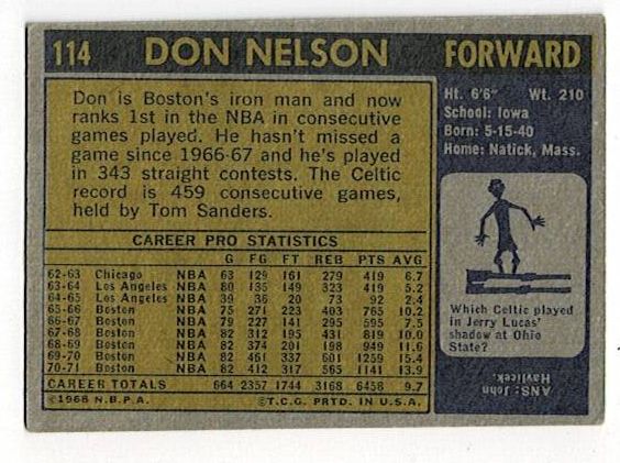 1971-72 Topps Basketball Don Nelson #114. The card is in excellent condition with corner wear.