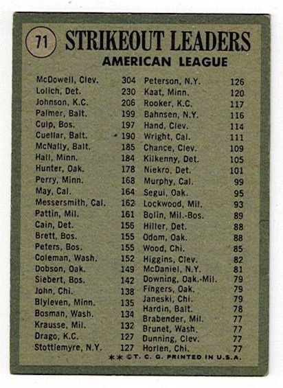 1971 Topps American League Strikeout Leaders Signed by All Three Players
