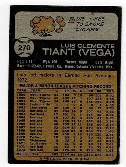 1973 Topps Luis Tiant Signed Card