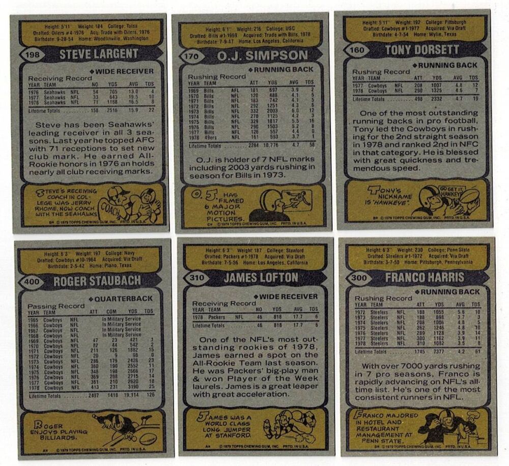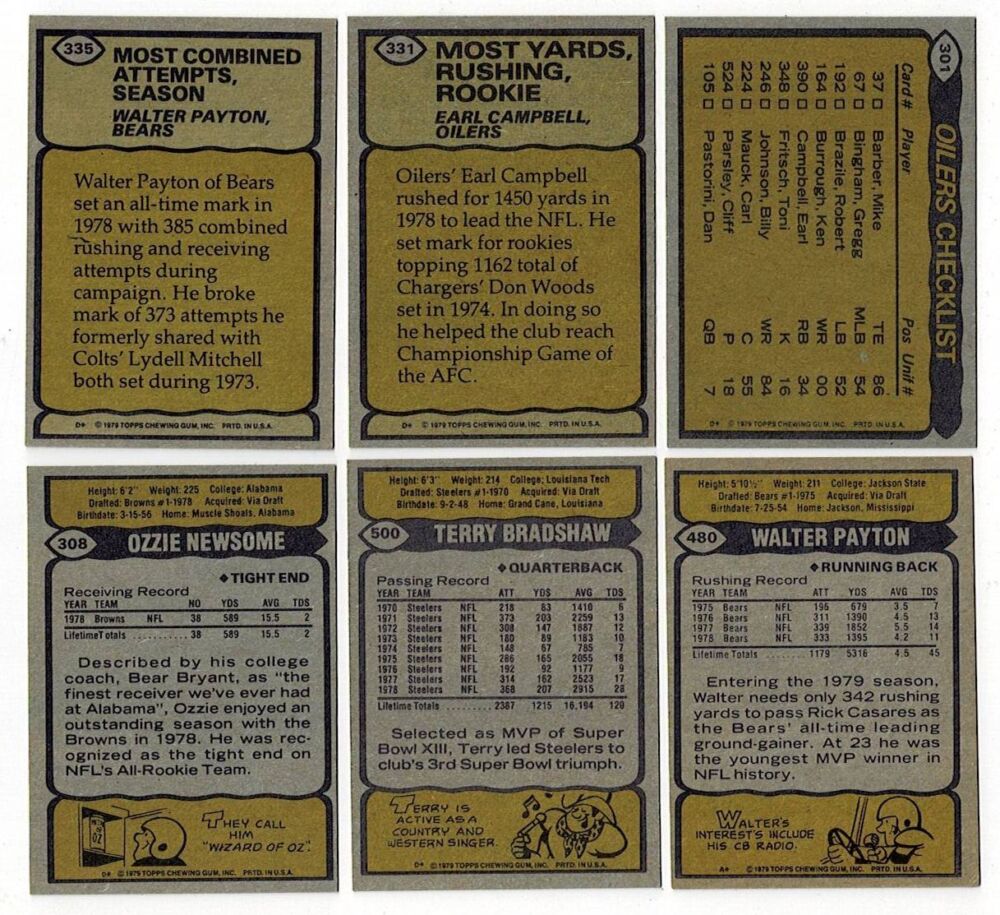 1979 Topps Football Complete Set Earl Campbell Rookie