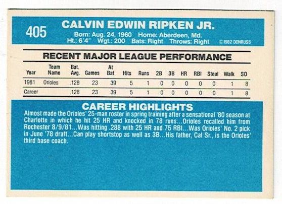 / 1982 Donruss Cal Ripken Jr. Rookie #405