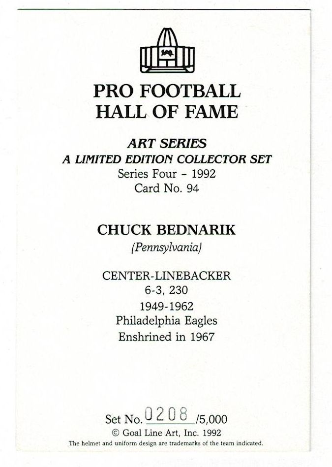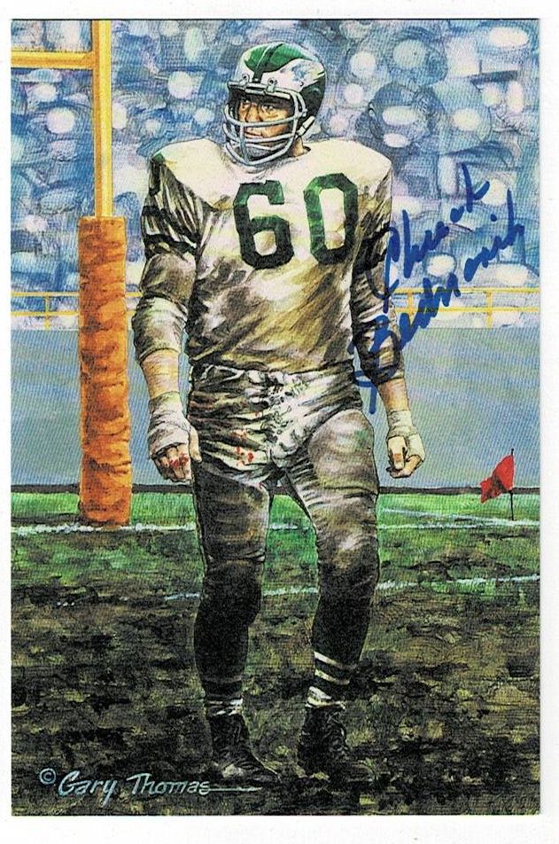 1992 Chuck Bednarik Signed Goal Line Art Postcard