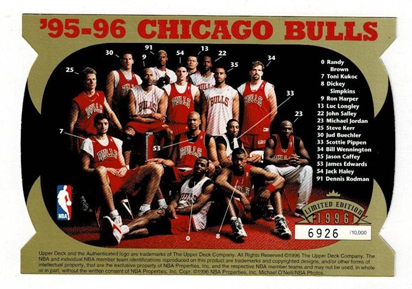/ 1996 Upper Deck 1995-96 Chicago Bulls 72 Wins/1996 NBA Champions #/10000