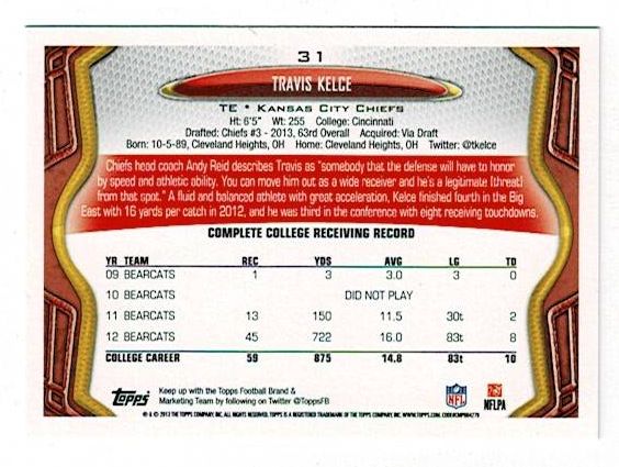 2013 Topps Football Complete Set 1-440 Travis Kelce Rookie