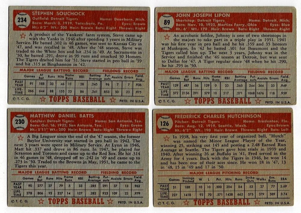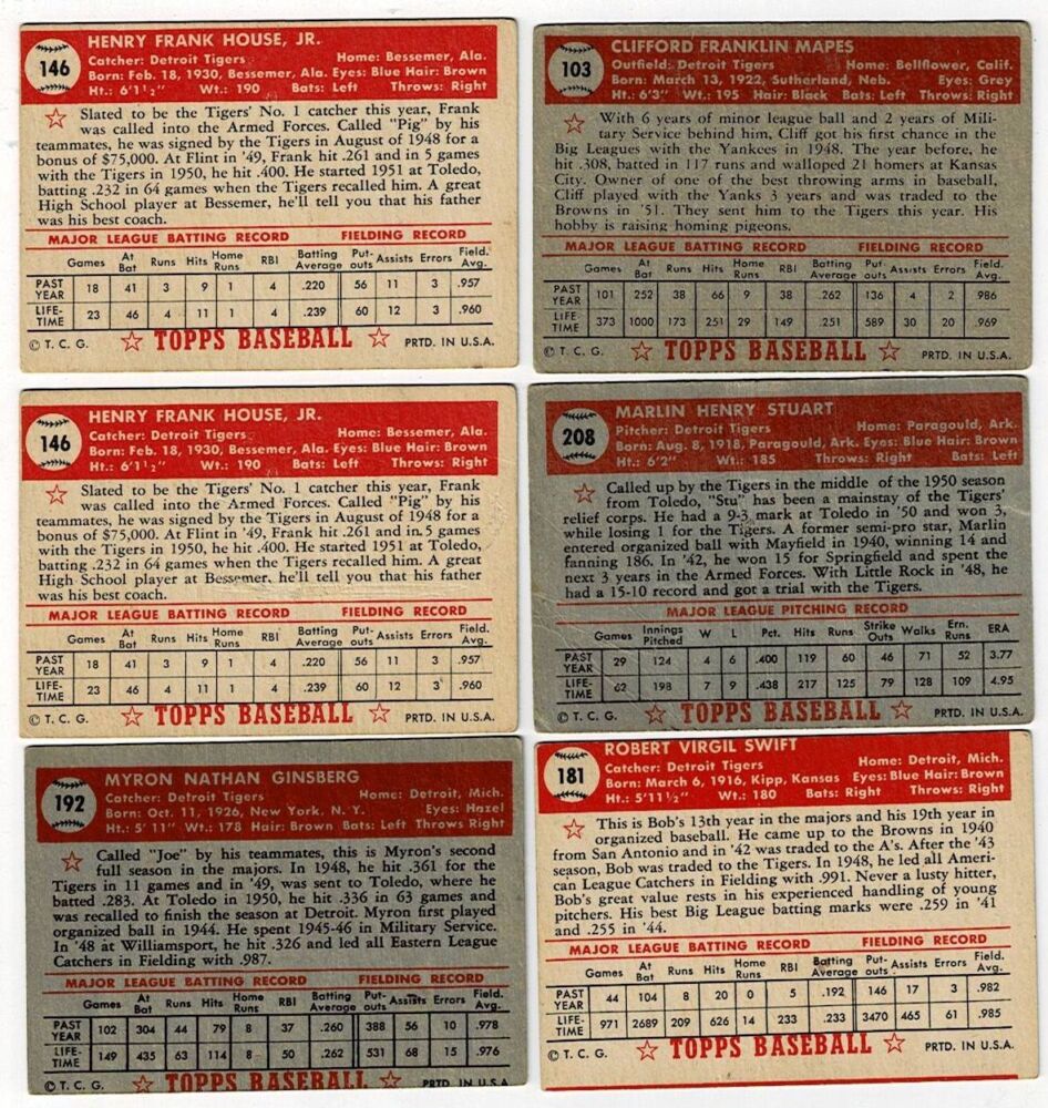 Lot of 10 1952 Topps Baseball Cards Detroit Tigers