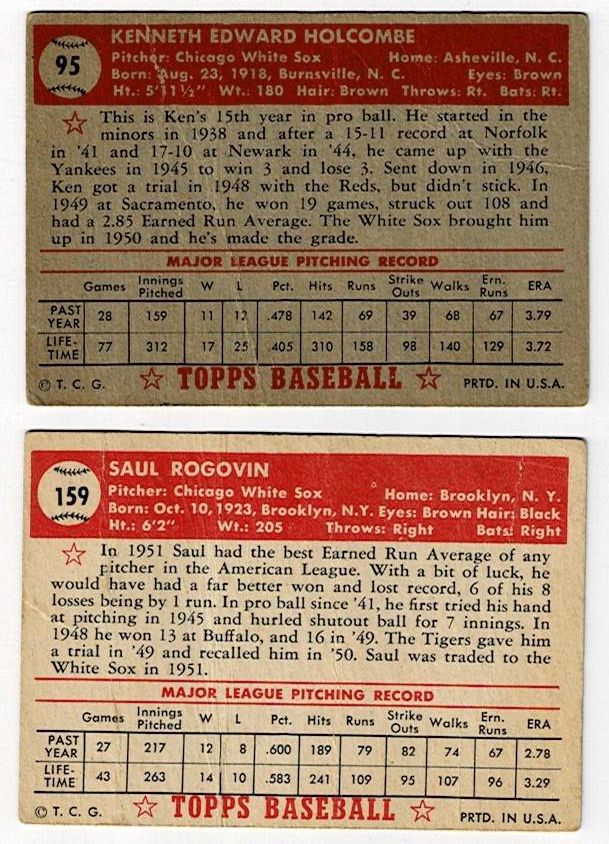 Lot of 2 1952 Topps Baseball Cards Chicago White Sox