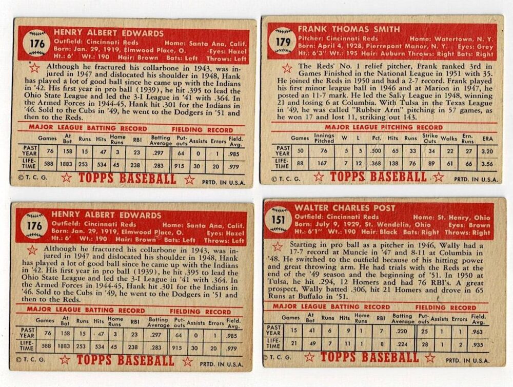 Lot of 3 1952 Topps Baseball Cards Cincinnati Reds