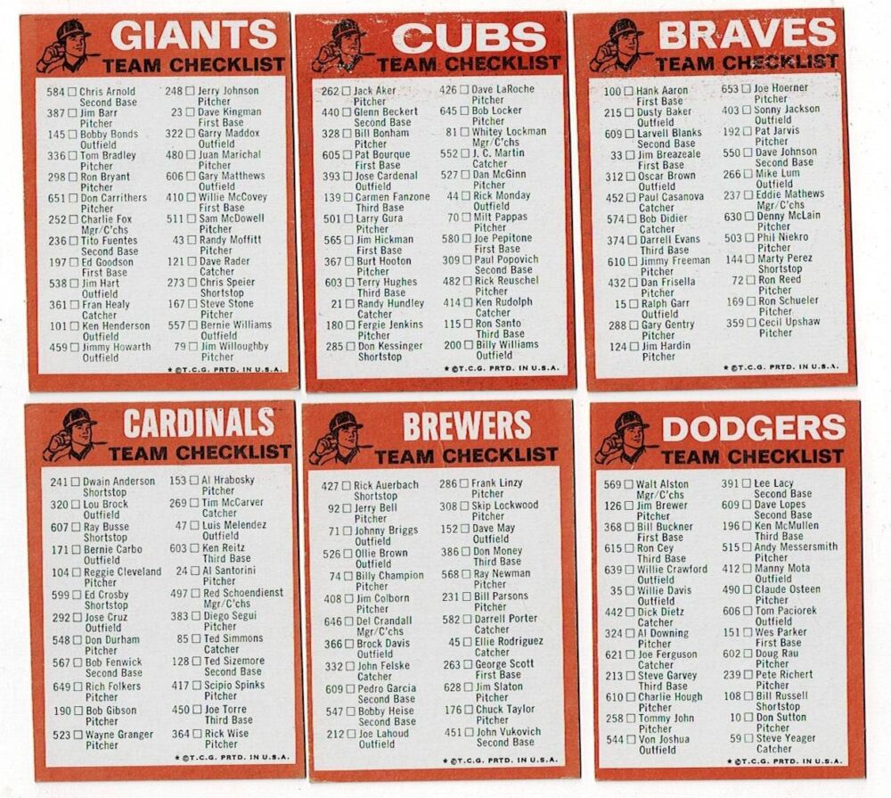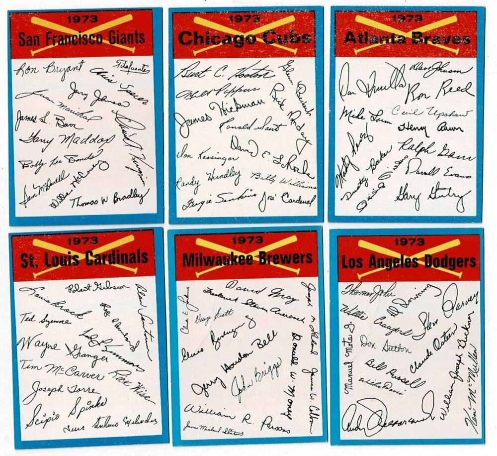 Lot of 6 1973 Topps Baseball Blue Team Checklists Unmarked